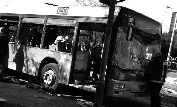 /耶路撒冷街头,遭自杀式爆炸袭击的公共汽车