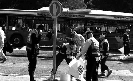 除了咖啡馆,以色列城市街头的巴士,也是自杀袭击重灾区。那天我在耶路撒冷公交车爆炸现场,站在下风口,空气里是汽车焦油混合着血腥的味道——那味道与加沙街头巴勒斯坦汽车遭以色列导弹袭击之后的味道一般无二。