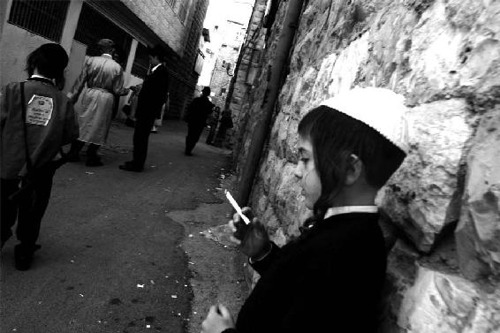 “这里,就是犹太区的尽头。”德维指点不远处一堵院墙,把我拉回现实。而他家对面,3米开外,就是穆斯林区。“5年前,对面的巴勒斯坦小孩朝我家吐口水、扔石头,我就把石头扔回去,砸到那孩子的脸……然后我闯到他家里吼:‘再敢这样就杀你们全家’……后来我们相安无事,一直到现在……”“威慑”向来是德维的处世哲学。上小学时遭同学欺负,他居然用酒瓶戳伤对方的肚子。虽然遭到停课处分,但从此无人再敢招惹他,大家都认为他是个疯子。“我们的国家也是这样,谁敢欺负我们,就加倍报复。”德维当然服过兵役。