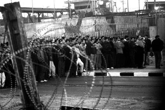 31岁的阿布·艾哈迈德说,他在检查站北部的一个以色列小城市打工,每天可以赚到150谢克尔,除去交通费和午餐,最后剩下100谢克尔。出关后,有大巴士接工人们去指定地点打工,车费由巴勒斯坦工人缴纳。“你见过像以色列这样不讲理的国家吗?”“犹太人经常刁难我们,不拿我们当人!”“封锁、封锁,所以我们才不得不到以色列打工……我原来是大学老师呢……”他们怨声载道,却不得不抢着给自己的“敌人”打工。工人们的身份各不相同,其中不乏大学毕业生、教授等知识分子。