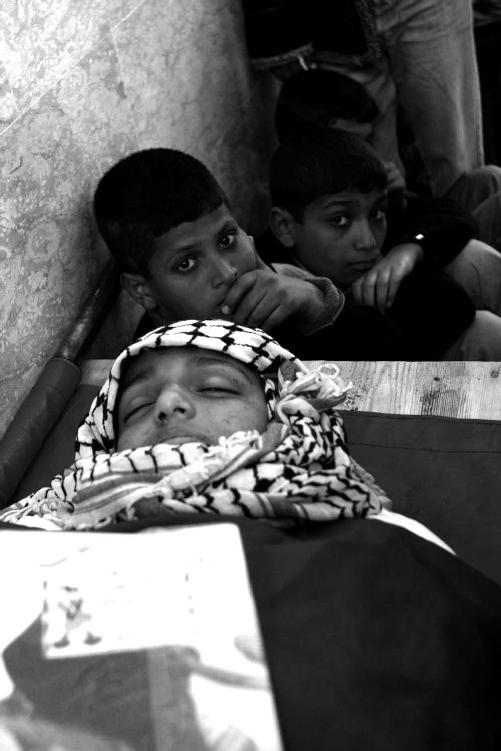 一个警察模样的人把我拉过去,递上一张纸,说死去的那个小孩叫塔里克·苏希,14岁(后来证实是11岁)。今天以色列空袭的目标是一名杰哈德官员。