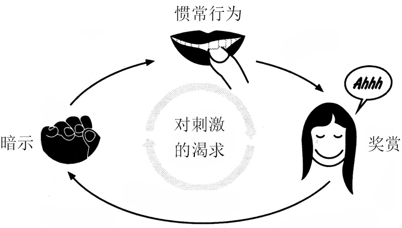 图3.2 留住暗示,提供同样的奖赏,插入新的惯常行为