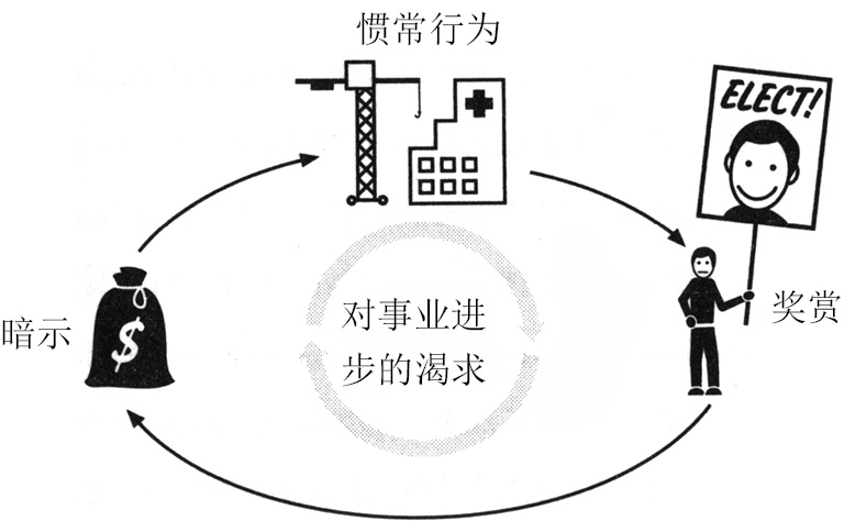 比如说,美国国会在“二战”后制订了一个建设社区医院的计划,这个计划在25年后还在执行,每当法律制定者将医疗保健基金分配下来,官员们立刻就会继续建造医院。新医院所在城镇本来并不一定需要那么多病床,但官员们觉得这无关紧要。真正紧要的是,这能成为一个政治家在巡回选举演说拉票时,可以提及的一桩大工程。