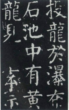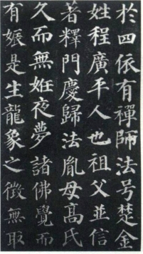 《颜勤礼碑》的确是大名鼎鼎的经典之作,但恕我局狭,至今未见真气弥漫的好本子。因为洗碑的缘故(图十五),所谓善本也是剜剔过甚,完全失真,神情僵硬。《麻姑山》版本问题简单,但前半段没有活跃起来,一般人忍受不了它的“枯燥”,等不到享受后半部分的洒脱(图十六)。《多宝塔》信为名作,但其中写经意味的残存,一般人保持不了它的高度,会流为俗不可耐,何况《多宝塔》的茂密与一丝不苟容易让现代人喘不过气来,临摹不过一通便失去信心(图十七)。