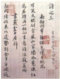 较长的落款一般用于记录事件。如专为雅集、宴会、庆典等活动作书,可能需要用落款说明梗概;又如为某件古物、书画、书籍等珍玩作书纪念,正文的形式或诗词,或联句,落款文字为说明原委,往往略同跋语,凡此虽都属于长款,也须力求简洁(图二十六)。