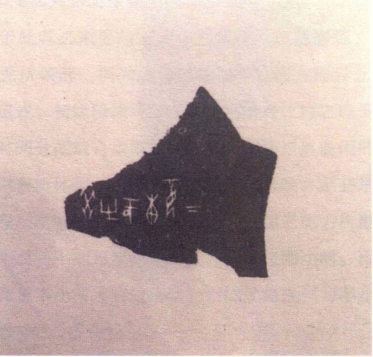 至于长款,难免多行书写。多行落款,行之多寡与每行字数大有讲究。曾见一巨大笔会,主办方领导为公共事业邀请某书法家当场挥毫,题材指定,措辞则请便。这种“命题作文”当然是最见功夫的,你必须信手拈来,援笔立就。当时书家铺四尺整纸,写四个大字,虽然扣题,但恕我浅见,从未见这种形式能够安排协调的,我甚至谬以为四尺整纸书四个大字就是书法大忌,这并非危言耸听。如此误入章法“禁区”,接踵而来便是“情怠手阑”。当时出此下策,书家自己也颇手足无措,他显然对落款位置举棋不定,犹豫片刻,他选择了在大字正文下方落款,而不是左方(后面),这是他再次出错!我以为他那天宁可在后方落简短款署,即使上下裁纸。选择下方,他显然意识到狭长的空白处落款不宜太短,因此努力为文,三两行之后便无法自如收放,硬是将自己逼到了三字一行难以打破的僵局。更为尴尬的是,最后署名,已经没有勇气破除一行三字的魔咒,竟将自己名字的两个字分别置于两行的首末!顺便建议,逢此情形,非要下方落款,我倒以为款字自右及左单行排列,占了空间藏了拙,有何不可!单行横排向左读,是殷商甲骨文就有的传统(图二十九)。