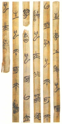 毛笔发明之初,文字尚在篆书的体系,书写基本不需要侧锋。我们现在能够看到的商代龟甲片上的墨书真迹,就是对中锋用笔的很好阐释。所以,《说文解字》说:“篆,引也。”这个引字,也是中锋用笔过程非常贴切的描绘。西周名器《大盂鼎》中大量出现的方笔,不论是书写的本然,还是工艺修饰的结果,都不足以说明侧锋已经可以和中锋分庭抗礼,至少那个时代侧锋方笔的运用是个别的现象。
