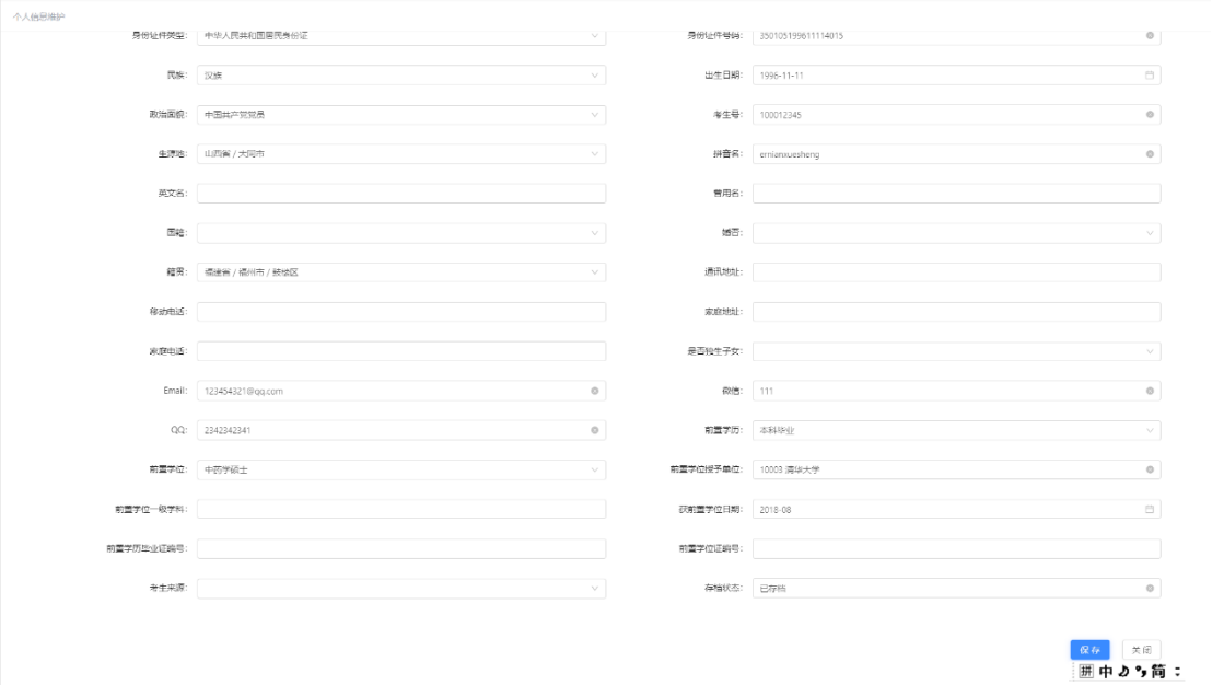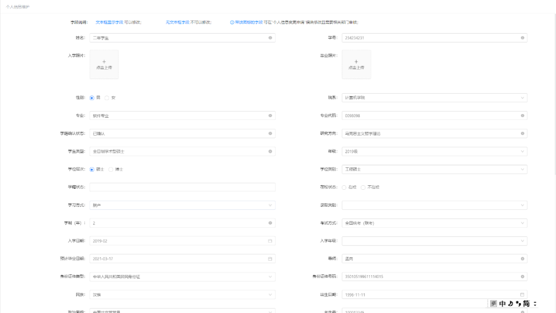 操作说明:进入应用门户中,点击右上角进入空间,进入个人空间,点击【个人管理】→【个人信息维护】,进入如图2-1所示界面。可以输入各项个人信息。