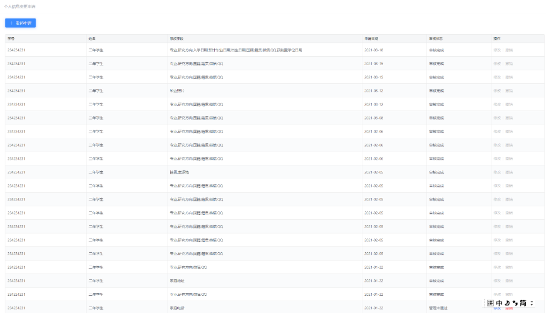 操作说明:进入应用门户中,点击右上角进入空间,进入个人空间,点击【个人管理】→【个人信息变更申请】,进入如图2-2所示界面。点击【发起申请】,可以发起个人信息变更的申请。