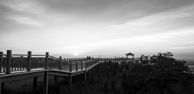 潼关的十里画廊堪称旅游开发上的杰作。漫步在十里画廊上的游客,不仅陶醉于“画廊”美景,也对决策者和设计、建造者的创意赞不绝口。十里画廊是漫游潼关的一条主线,通过它能够巧妙地把县域内许许多多的景点串联起来,全部建成后,观雄关古道、赏金城美景、品历史文化、游古城古寨诸多景点牵于画廊一线将变为现实。项目的设计和建造者可谓独具匠心,他们充分利用潼关的地形地势,把栈道建在荒草萋萋、枣刺丛生的塬畔、沟壑。木栈道为主体,间或有水泥步行道,几多木质亭台供游人小憩,数个屋顶长廊可避风雨,凌空而架的悬索桥平添了游廊之趣,几处小型广场充满了文化气息。在岳渎公园东端通过架设木质拱桥把岳渎公园和十里画廊景区连成一个整体,成为整个景区建设的一个亮点,在沟壑上架设悬索桥,可让游人从空中索道直达凤凰山,这是栈道建设上的又一个亮点。特别是在凤凰门到山脚一段,10多个“Z”字形的木栈道连成一个整体,曲曲折折,艺术地解决了悬崖峭壁上上下通行的问题,成为“十里画廊”栈道的奇观。每到夜幕降临,安装在栈道两边的太阳能路灯几乎同时点亮,从远处看,尽管曲折起伏但整齐有序,成了潼关南塬畔夜晚一道亮丽的景观。行走在十里画廊上,一种自然和谐、巧夺天工的感觉会油然而生。