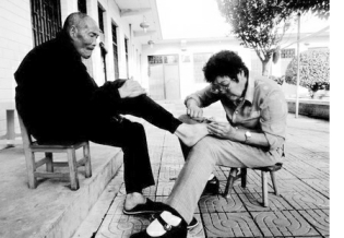 李竹棉为老人剪指甲