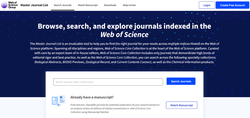 Web of Science平台中,大家可能更熟悉SCI等核心合集之类的文摘数据库,但是它其实还提供很多高效科研工具。在之前的信息素养讲座中,我们曾介绍过incites、JCR、ESI等科研分析工具,今天为大家带来的是一款期刊选择利器——Master Journal List,中文通常翻译为主期刊列表。