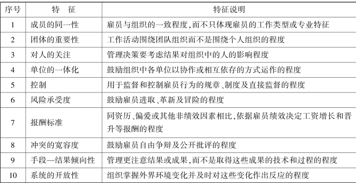 尽管现在还没有规范性的方法来准确测量组织的文化,但可以通过评价一个组织具有的10个特征的程度来识别组织文化,组织文化是这10个特征的复合体,如表3.1所示。