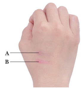 1.先蘸取B色眼影,轻轻刷满整个眼窝,并均匀地晕染开来。