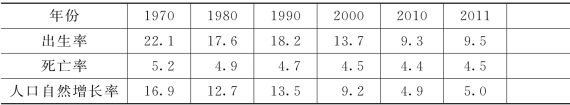 表3-5 1970—2011年新加坡人口出生率和死亡率 单位:‰