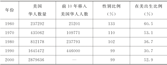 表3-17 1960—2000年美国华人人口增长情况