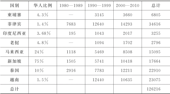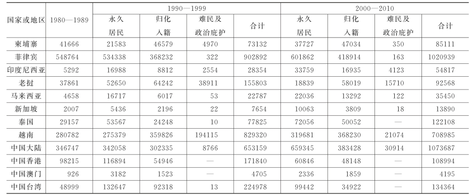 根据以上数据的相互印证,大体可以说,1960—2010年,东南亚地区华人海外移民应当超过60万,或在65万~70万之间。