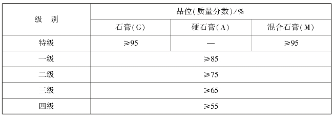 表3.1 天然石膏的分类与等级