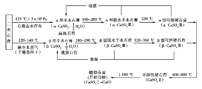 图3.1 由天然二水石膏经不同条件的热处理所得石膏产品
