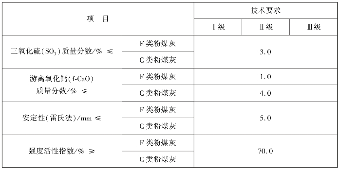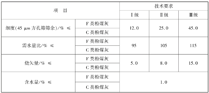 表5.16 拌制砂浆和混凝土用粉煤灰理化性能要求