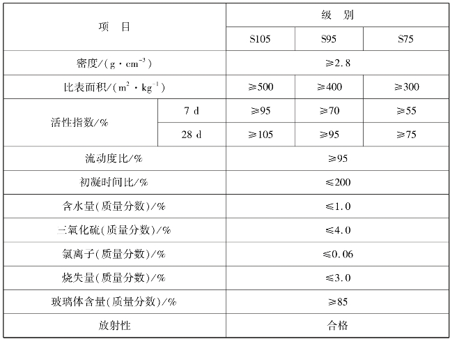 根据《用于水泥与混凝土中的粒化高炉矿渣粉》(GB/T 18046—2017)规定,矿渣粉的技术要求应满足表5.17的要求。粒化高炉矿渣具有潜在水硬性,是水泥和混凝土的优质外掺材料。近10年来,随着粉磨工艺的发展及水泥预配送站和预拌混凝土的兴起,粒化高炉矿渣超磨细粉作为水泥、混凝土和砂浆的掺合料,用于提高和改善水泥混凝土的性能,较大地提高了粒化高炉矿渣的利用价值。近几年国内开始对高炉矿渣粉及其配制的混凝土进行研究,相继对高炉矿渣粉在普通混凝土、高强混凝土中的应用进行了研究和实际工程应用,并在实际工程中采用了高炉矿渣粉配制高性能混凝土,取代水泥用量30%~50%,使用效果良好。在一些大中型工程中掺40%的矿渣粉配制C35~C40混凝土,应用效果良好。