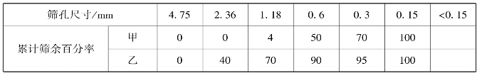 5.19 已知甲、乙两种砂的累计筛余百分率见下表: