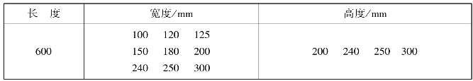 表7.14 蒸压加气混凝土砌块的规格尺寸