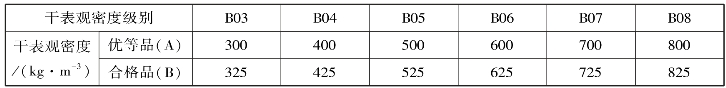 表7.16 蒸压加气混凝土砌块的干表观密度