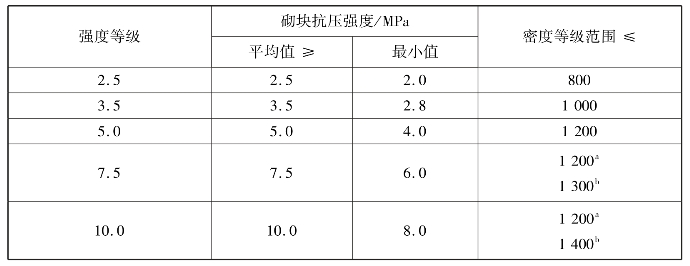注:a.除自燃煤矸石掺量不小于砌块质量35%以外的其他砌块;b.自燃煤矸石掺量不小于砌块质量35%的砌块。