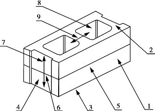 1—条面;2—坐浆面(肋厚较小的面);3—铺浆面(肋厚较大的面);4—顶面;5—长度;6—宽度;7—高度;8—壁;9—肋