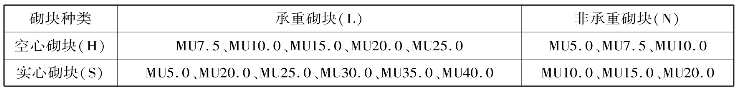 表7.19 轻骨料混凝土小型空心砌块的强度等级