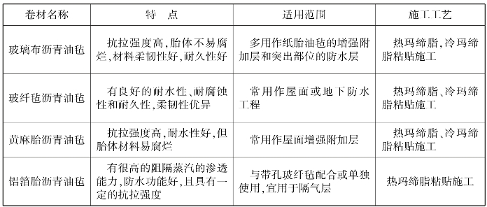 表11.5 沥青防水卷材的特点及适用范围