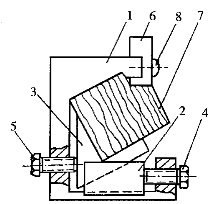 1—附件主杆;2—楔块;3—L形垫块;4,5—螺杆;6—压块;7—试样;8—圆头螺钉