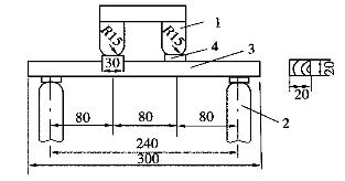 1—试验机压头;2—试验机支座;3—试样;4—钢垫片