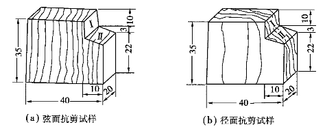 木材顺纹抗剪强度测定按《木材顺纹抗剪强度试验方法》(GB/T 1937—2009)进行。