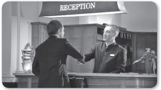 Cheng Yu is the local guide accompanying guests from American Import & Export Corporation,consisting of 20 members.Joe Smith is a business manager of this company.They have just arrived at the hotel and are ready to check in.A receptionist is attending them.After check-in,there is something wrong with facilities in the room.Joe asks for the help.Now practice speaking the following dialogues.