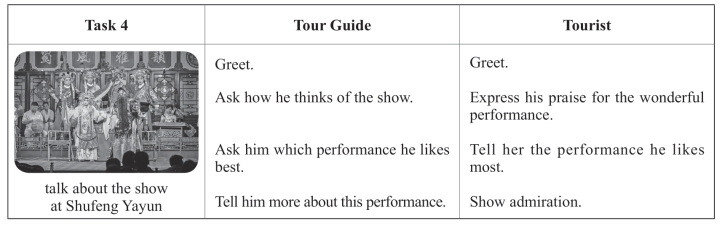 Work in pairs.Suppose you are a tour guide and you are responsible for an invididual tourist who is from America.Practice making conversations at the following scenarios.