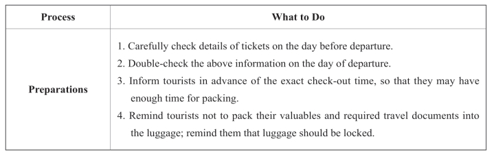 ( )2.Tour guide should check the tickets and other items and inform the tourists the arrangements before departure.