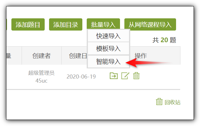 鼠标移到批量导入按钮上方,可以看到有三种批量导入方式,我们选择第三个“智能导入”。