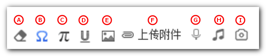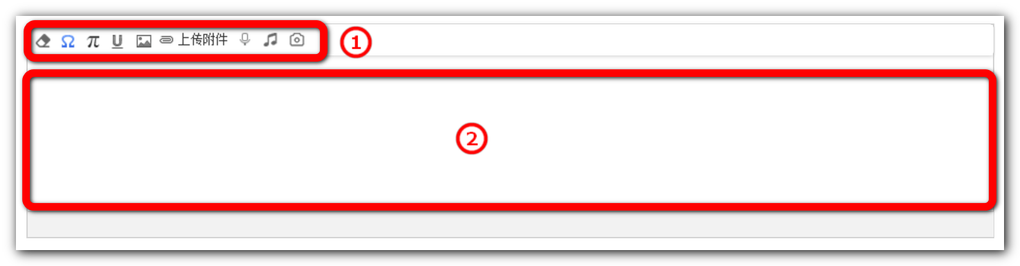 ②:编辑区,可以输入文字、图片、音频、公式等内容。