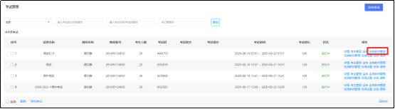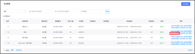 2.进入“考试列表”,在对应考试后点击“监考教师管理”进行监考教师添加。