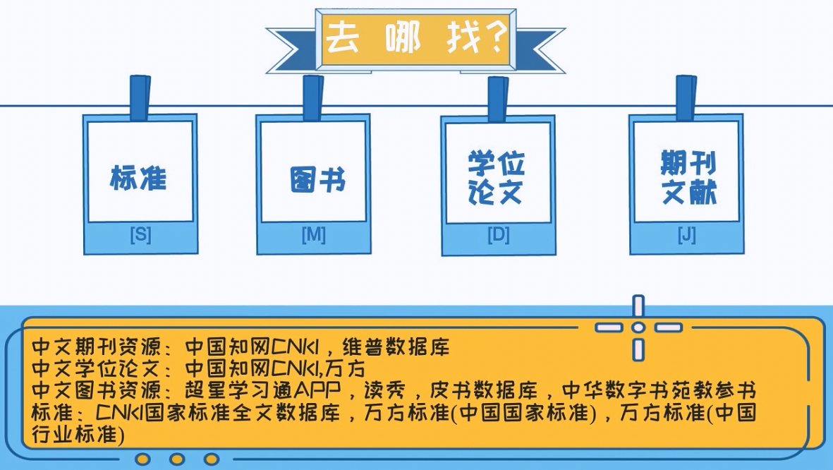 第一步:确定文献类型,中文文献主要的文献类型有期刊论文、专著、论文集、学位论文、专利、技术标准、报纸、科技报告。