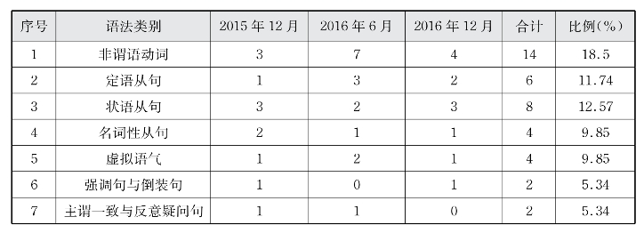 从以上的分析我们可以看出,非谓语动词和定语从句在语法结构中考核的比例比较大,它们属于重点考查的部分,虚拟语气和复合句也是常考内容。