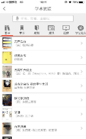 学术资源,在该界面可以搜索到相关的图书,期刊,章节,报纸,视频,学术论文等。