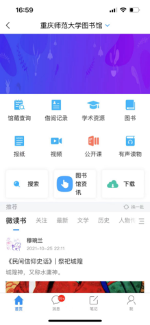 四.关注重庆师范大学图书馆微信公众号可进行基础功能同步使用。