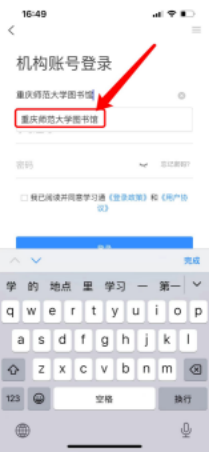 2.1.首次登录点击进入app,如下图,依次点击【其他登录方式】——输入【重庆师范大学图书馆】——点击弹出的【重庆师范大学图书馆】——跳出统一认证账号密码输入即可 (备注:账号密码为校园门户登录的账号密码)
