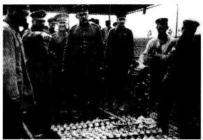 上尉军官哈伯(左2)亲临前线指挥毒气的释放。