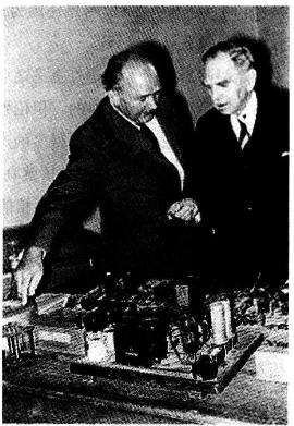 哈恩(右)和斯特拉斯曼在实验台旁边。