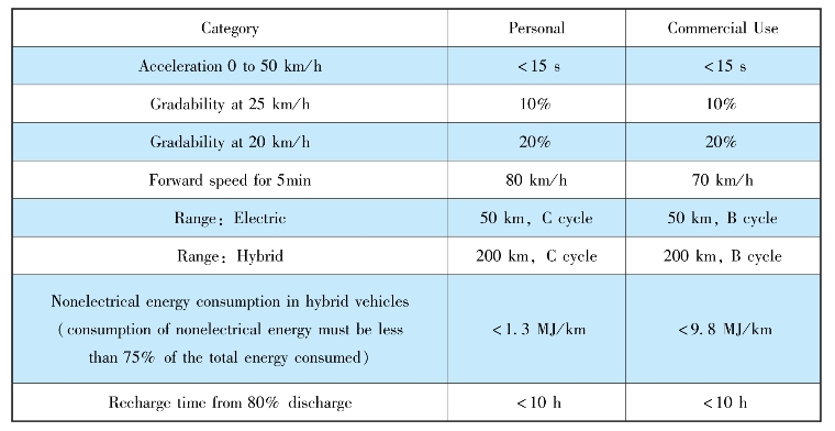 Table 1.3 EV Performance Standardization of 1976