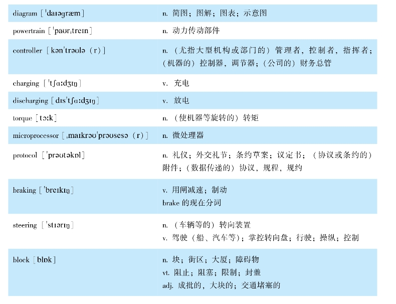 ★2.It can also receive signals like the battery's state of charge and can figure out whether the opportunity of regenerative braking is present.整车控制器也能接收蓄电池荷电状态信号,判断是否能够进行再生制动。